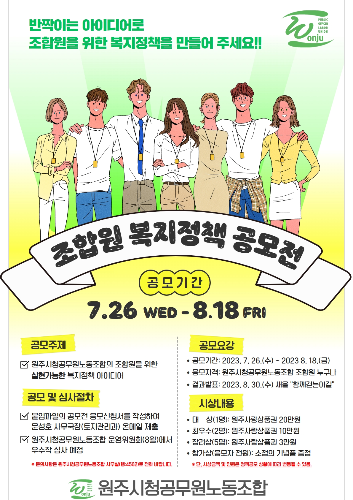 원주시청 공무원노동조합 제3대 임원 선거 출마자