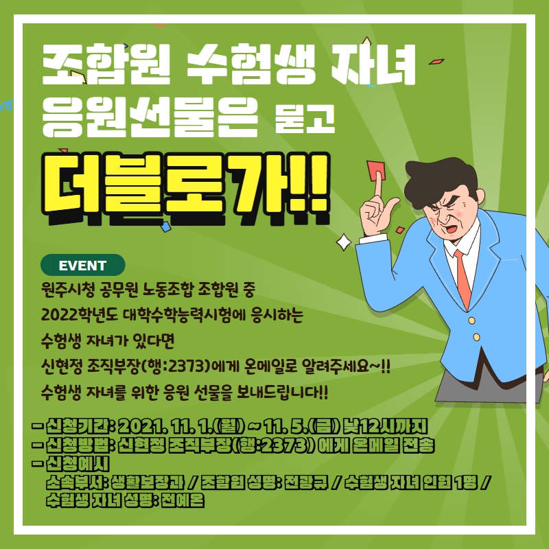 예비 성인 자녀 둔 조합원 응원 이벤트!