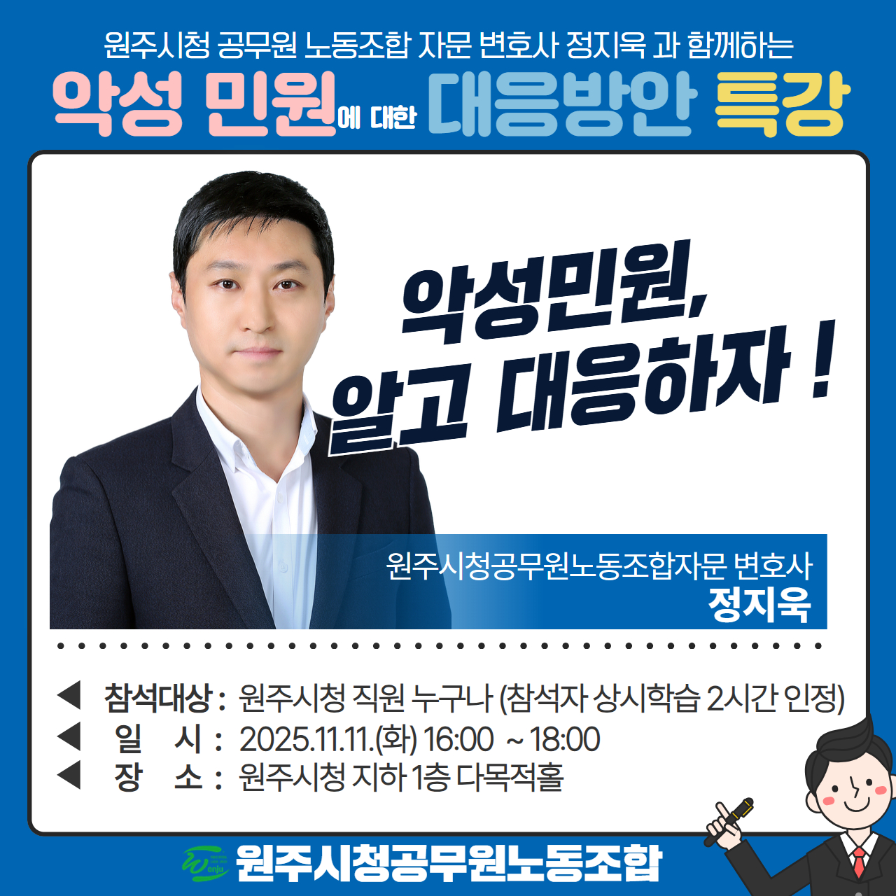 정지욱 변호사와 함께하는 악성민원 대응 법률 특강 안내
