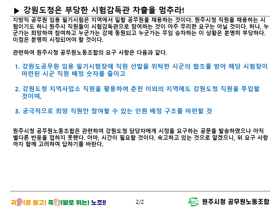 2025년 하반기 정기인사 전 원주시청 공무원노동조합 입장문