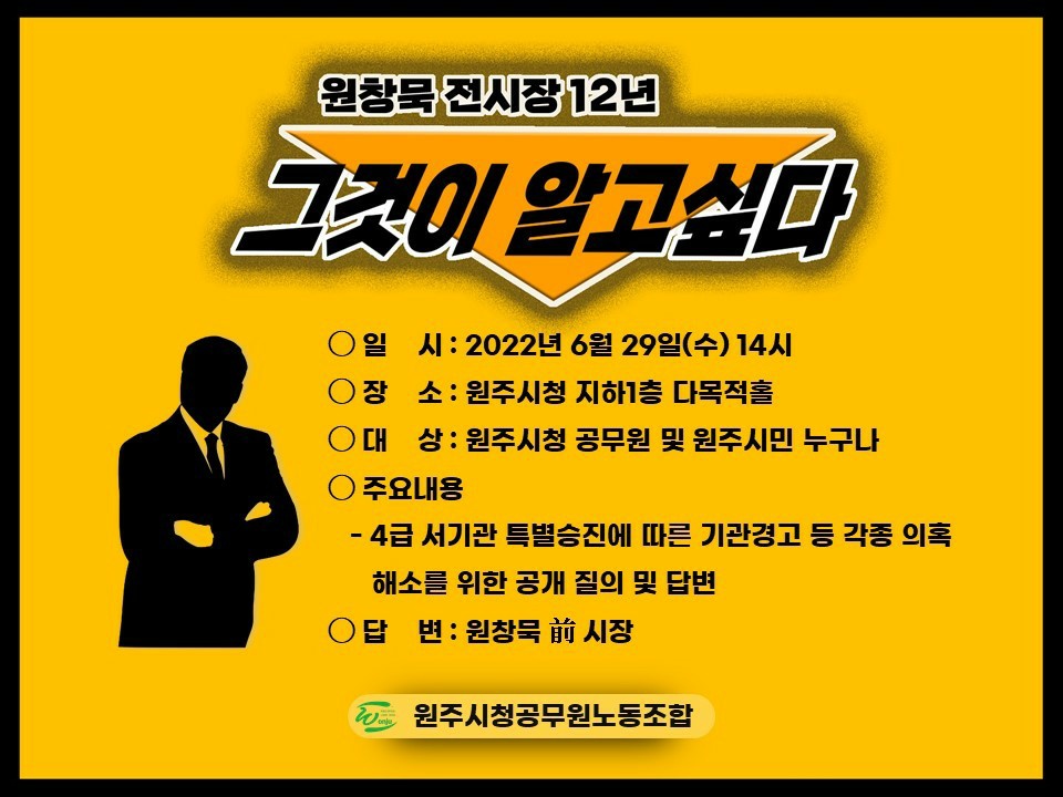 시설관리공단과 중부지역일반노동조합의 갈등에 대한 원주시청 공무원노동조합 입장문