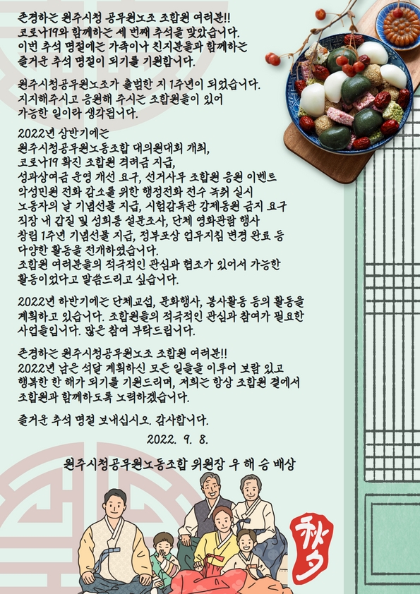 원주봉산일반산업단지 논란에 대한 원주시청 공무원노동조합 입장문