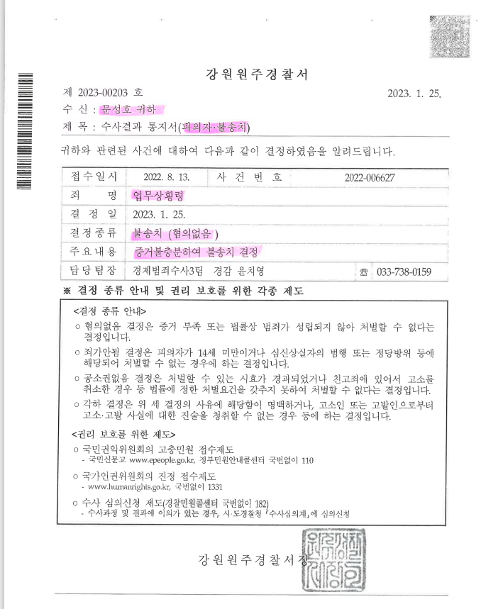 전공노 업무상 횡령죄 고소건(수사결과, 불송치 결정)