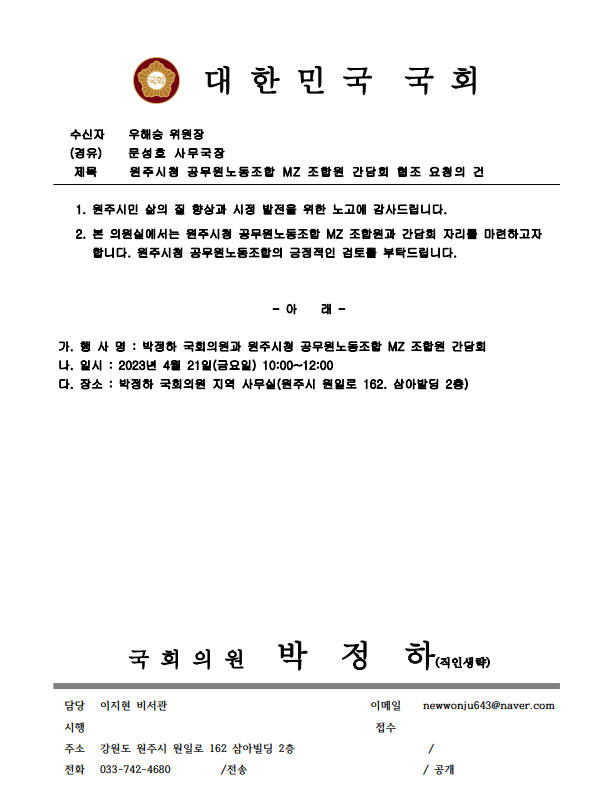 시설관리공단과 중부지역일반노동조합의 갈등에 대한 원주시청 공무원노동조합 입장문