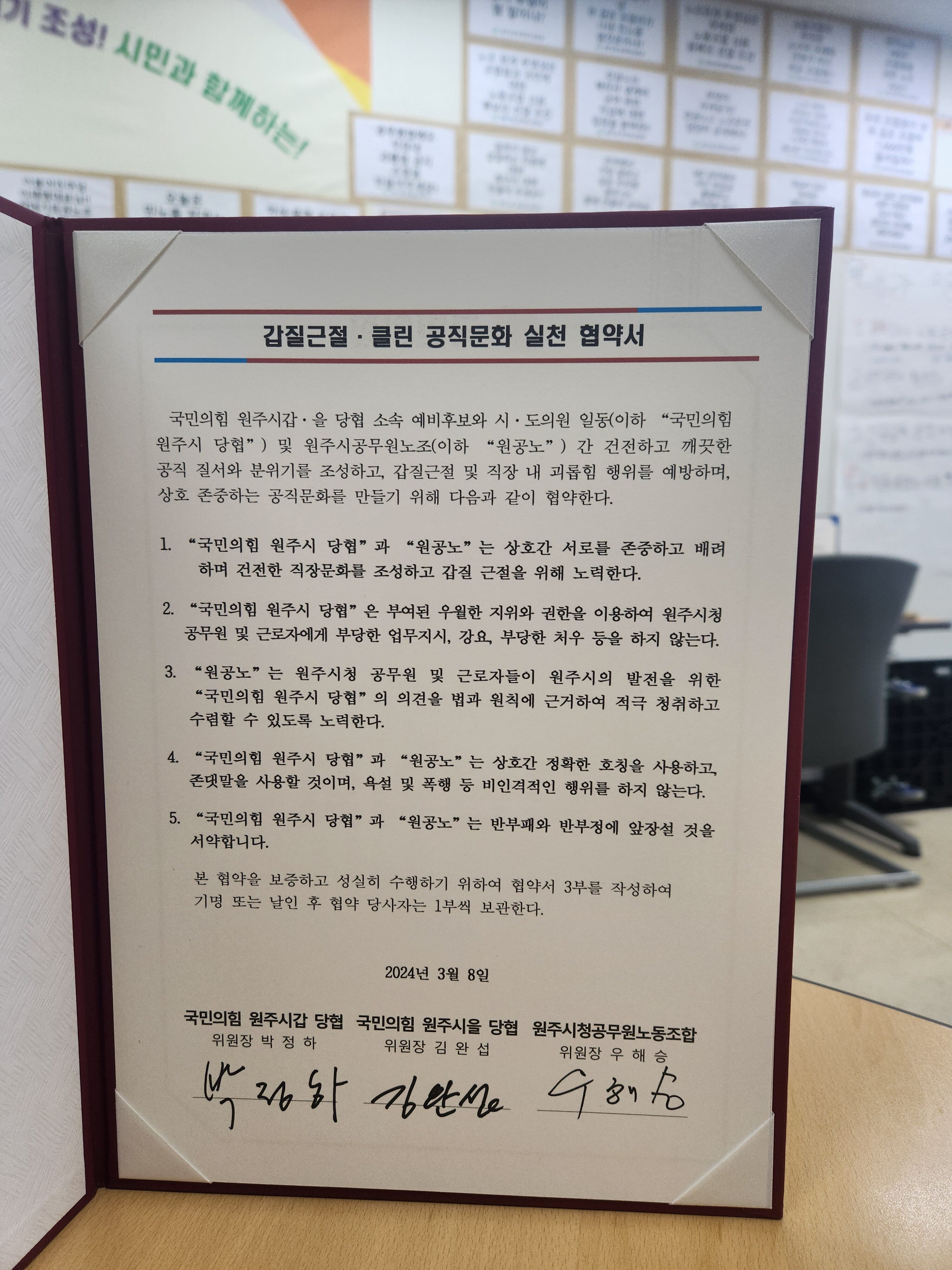 공지사항원주시청공무원노조·원주선관위, 22대 총선 선거사무 협의운영자